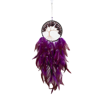 صائدة الأحلام المصنوعة يدويًا من الريش الأرجواني الصاعد مع شجرة الحياة تصميم معلق على الحائط ديكور المنزل دروبشيبينغ المتاحة